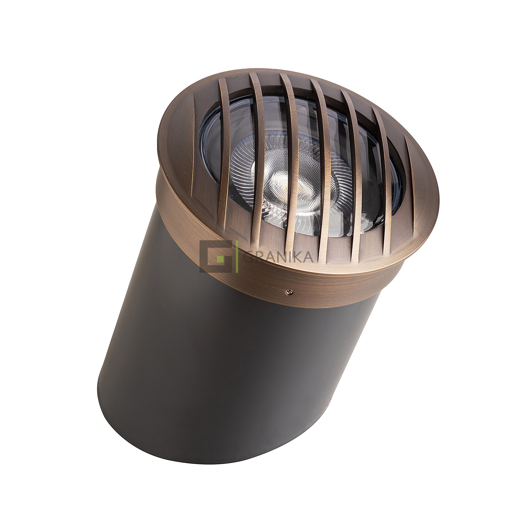 Уличный встраиваемый низковольтный светильник Ellison от производителя премиального низковольтного осветительного оборудования EnviLights. Светильник Ellison изготовлен из цельной литой латуни, диаметр 16.19см, высота 22.84см, напряжение 12В, максимальная мощность 35Вт, степень защиты IP65.